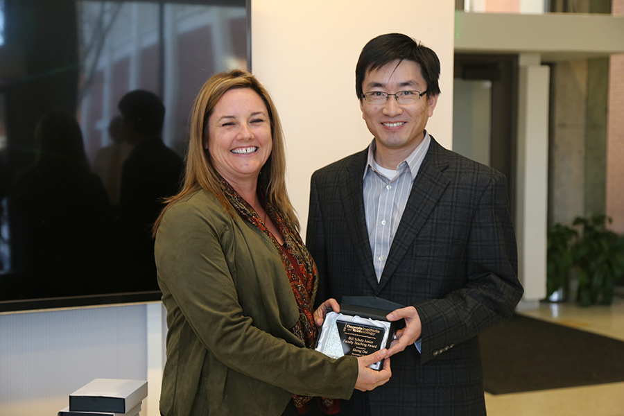 Interim School Chair Kimberly Kurtis handed out awards recognizing excellence in teaching, research and service to the School. Many of the winners now will be put forward for Georgia Tech awards in the spring.