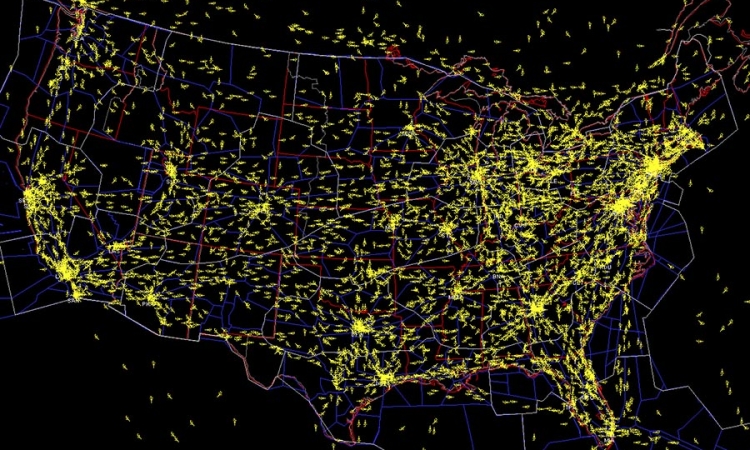 ![]() This image from software developed by NASA shows air traffic across the United States. Assistant Professor Sam Coogan has received funding from the U.S. Air Force to use new techniques to understand and manage how physical networks with interconnected components function. His work applies to all kinds of systems, like roads, airspace, water systems and factories. (Image Courtesy: NASA) |