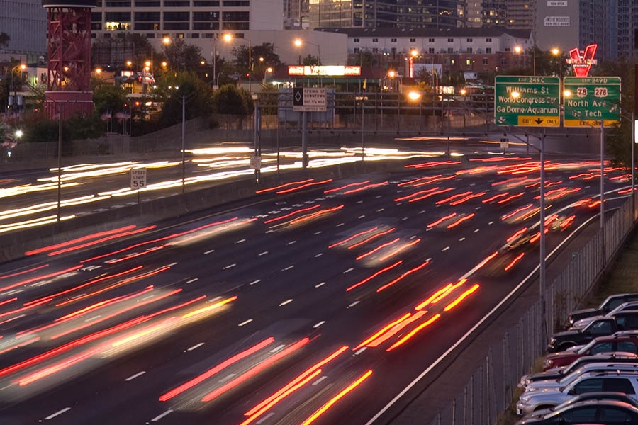 ![]() Cars speed along the Interstate 75/Interstate 85 Downtown Connector in Atlanta. Assistant Professor Samuel Coogan will spend the next five years building the mathematical foundation for models and techniques that will offer new ways to control traffic flow on roads like this one. With the support of a National Science Foundation Early Career Development award, Coogan will use the mountains of new data available about our transportation networks to build his models and then prove that they work. (Photo: Rob Felt) |