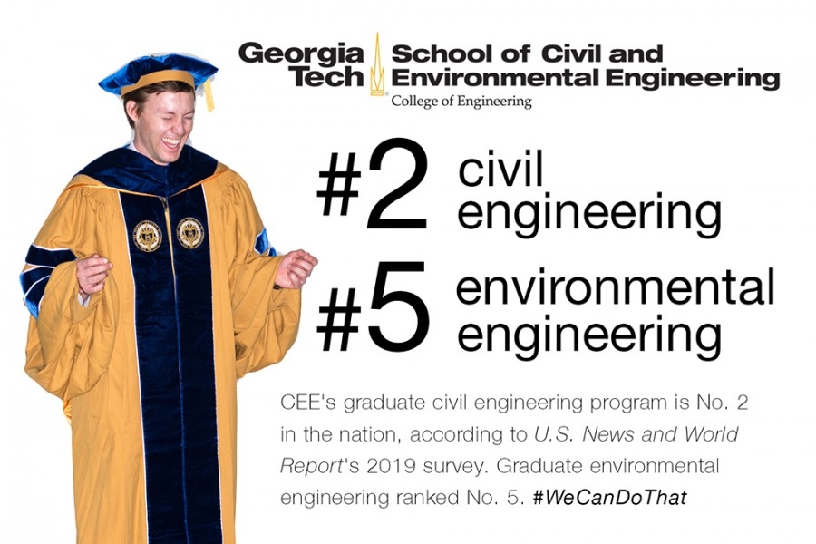 U.S. News and World Report’s 2019 assessment of post-baccalaureate programs put Tech’s civil engineering master’s and Ph.D. programs at No. 2 in the country and the environmental degrees at No. 5.